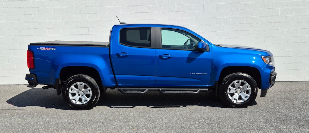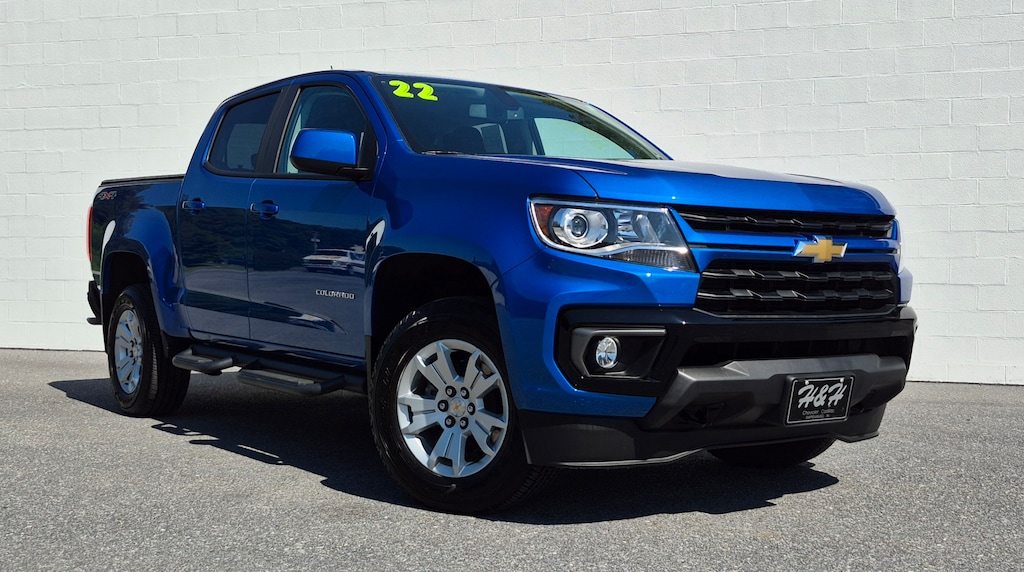 CARFAX One-Owner. Clean CARFAX. 2022 Chevrolet Colorado LT Bright Blue Metallic 4WD 8-Speed Automatic V6 Bought New at H&H!, Local Trade, Excellent Condition, 3.42 Rear Axle Ratio, ABS brakes, All-Weather Floor Liner (LPO), Apple CarPlay/Android Auto, Auto-dimming Rear-View mirror, Automatic Locking Rear Differential, Black Spray-On Bedliner w/Chevrolet Logo, Compass, Driver 6-Way Power Seat Adjuster, Dual front impact airbags, Dual front side impact airbags, Electronic Stability Control, Enhanced Driver Instrument Information Display, Forward Collision Alert, Front & Rear Splash Guards, Front Bucket Seats, Front Fog Lamps, Fully automatic headlights, Heated Driver & Front Passenger Seats, Heated Steering Wheel, Heavy-Duty Trailering Package, Leather-Appointed Seat Trim, Low tire pressure warning, LT Convenience Package, Luxury Package, Manual Rear-Sliding Window, Occupant sensing airbag, Outside Heated Power-Adjustable Body-Color Mirrors, Outside temperature display, Overhead airbag, Overhead console, Power Driver Lumbar Control Seat Adjuster, Power windows, Preferred Equipment Group 4LT, Premium audio system: Chevrolet Infotainment 3, Projector-Type Headlamps, Rear Vision Camera, Rear-Window Electric Defogger, Remote keyless entry, Remote Vehicle Starter System, Security system, Single-Zone Auto Climate Control Air Conditioning, SiriusXM Radio, Speed control, Steering wheel mounted audio controls, Tachometer, Telescoping steering wheel, Tilt steering wheel, Traction control, Trip computer, Variably intermittent wipers, Wheels: 17" x 8" Blade Silver Metallic Cast Alloy. Odometer is 30268 miles below market average! CALL US NOW FOR DETAILS 888-532-2121 HHCHEV.COM.