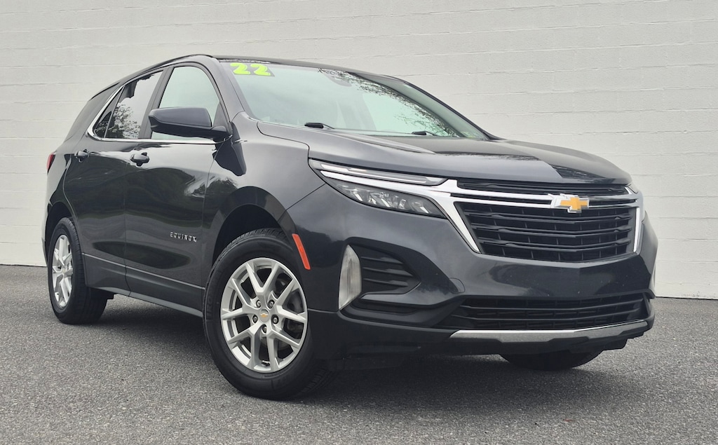 Clean CARFAX. 2022 Chevrolet Equinox LT Iron Gray Metallic AWD 6-Speed Automatic Electronic with Overdrive 1.5L DOHC Local Trade, 17" Aluminum Wheels, 2 Rear USB Charging-Only Ports, 8-Way Power Driver Seat Adjuster, ABS brakes, Air Conditioning, Bluetooth® For Phone, Compass, Dual front impact airbags, Dual front side impact airbags, Electronic Stability Control, Front Bucket Seats, Front Center Armrest, Fully automatic headlights, Heated door mirrors, Low tire pressure warning, Occupant sensing airbag, Outside temperature display, Overhead airbag, Overhead console, Power door mirrors, Power windows, Preferred Equipment Group 1LT, Premium audio system: Chevrolet Infotainment 3, Premium Cloth Seat Trim, Radio: Chevrolet Infotainment 3 System w/AM/FM, Rear window defroster, Rear window wiper, Remote keyless entry, Security system, SiriusXM Radio, Speed control, Speed-sensing steering, Split folding rear seat, Steering wheel mounted audio controls, Tachometer, Telescoping steering wheel, Tilt steering wheel, Traction control, Trip computer, Variably intermittent wipers, Wireless Apple CarPlay/Wireless Android Auto. 25/30 City/Highway MPG CALL US NOW FOR DETAILS 888-532-2121 HHCHEV.COM.