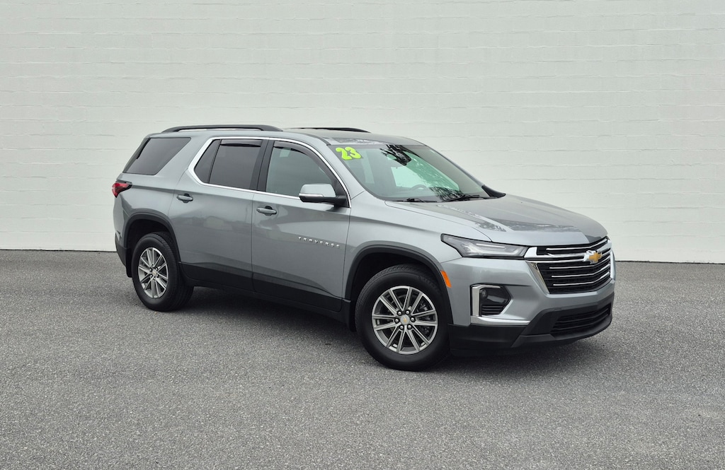 CARFAX One-Owner. Clean CARFAX. 2023 Chevrolet Traverse LT Sterling Gray Metallic 1LT AWD 9-Speed Automatic 3.6L V6 SIDI VVT Bought New at H&H!, Local Trade, 2-Way Manual Front Passenger Seat Adjuster, 3rd row seats: split-bench, 8-Way Power Driver Seat Adjuster, ABS brakes, Apple CarPlay/Android Auto, Automatic temperature control, Compass, Dual front impact airbags, Dual front side impact airbags, Electronic Stability Control, Exterior Parking Camera Rear, Front Bucket Seats, Front dual zone A/C, Fully automatic headlights, Garage door transmitter, Heated door mirrors, Heated front seats, Illuminated entry, Leather steering wheel, Low tire pressure warning, Occupant sensing airbag, Outside temperature display, Overhead airbag, Overhead console, Power door mirrors, Power Driver Lumbar Control, Power Liftgate, Power windows, Preferred Equipment Group 1LT, Premium Cloth Seat Trim, Radio: Chevrolet Infotainment 3 Plus System, Rear air conditioning, Rear window defroster, Rear window wiper, Remote keyless entry, Security system, SiriusXM w/360L, Speed control, Steering wheel mounted audio controls, Tachometer, Telescoping steering wheel, Tilt steering wheel, Traction control, Trip computer, Turn signal indicator mirrors, Variably intermittent wipers, Voltmeter, Wheels: 18" Bright Silver-Painted Aluminum. Odometer is 16764 miles below market average! CALL US NOW FOR DETAILS 888-532-2121 HHCHEV.COM.
