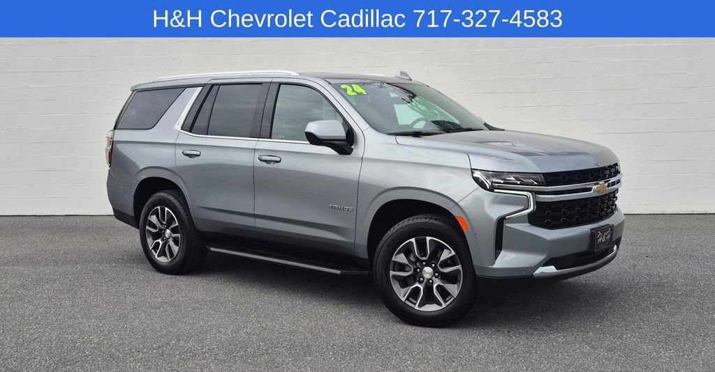 CARFAX One-Owner. Clean CARFAX. 2024 Chevrolet Tahoe LS Sterling Gray Metallic 4WD 10-Speed Automatic with Overdrive EcoTec3 5.3L V8 Bought New at H&H!, Local Trade, 1st & 2nd Row Color-Keyed Carpeted Floor Mats, 2-Speed Active Electronic AutoTrac Transfer Case, 3.23 Rear Axle Ratio, 3rd row seats: split-bench, ABS brakes, Advanced Trailering Package, AM/FM radio: SiriusXM with 360L, Apple CarPlay/Android Auto, Automatic temperature control, Bumpers: body-color, Compass, Driver & Front Outboard Passenger Airbags, Driver Alert Package, Dual front impact airbags, Dual front side impact airbags, Electronic Stability Control, Emergency communication system: OnStar and Chevrolet connected services capable, Extra Capacity Cooling System, Floor Console w/Storage Area, Front dual zone A/C, Front High-Back Reclining Bucket Seats, Fully automatic headlights, Heated door mirrors, Illuminated entry, Integrated Trailer Brake Controller, Lane Change Alert w/Side Blind Zone Alert, LED Daytime Running Lamps, License Plate Front Mounting Package, Low tire pressure warning, Max Trailering Package, Occupant sensing airbag, Outside temperature display, Overhead airbag, Overhead console, Power door mirrors, Power driver seat, Power passenger seat, Power windows, Preferred Equipment Group 1LS, Premium audio system: Chevrolet Infotainment 3, Premium Cloth Seat Trim, Rain sensing wipers, Rear air conditioning, Rear Cross Traffic Alert, Rear window defroster, Rear window wiper, Remote keyless entry, Remote Start, Security system, SiriusXM w/360L, Speed control, Speed-sensing steering, Split folding rear seat, Steering wheel mounted audio controls, Tachometer, Telescoping steering wheel, Tilt steering wheel, Traction control, Trip computer, Variably intermittent wipers, Voltmeter, Wheels: 20" x 9" Painted Aluminum, Wrapped Steering Wheel. CALL US NOW FOR DETAILS 888-532-2121 HHCHEV.COM.
