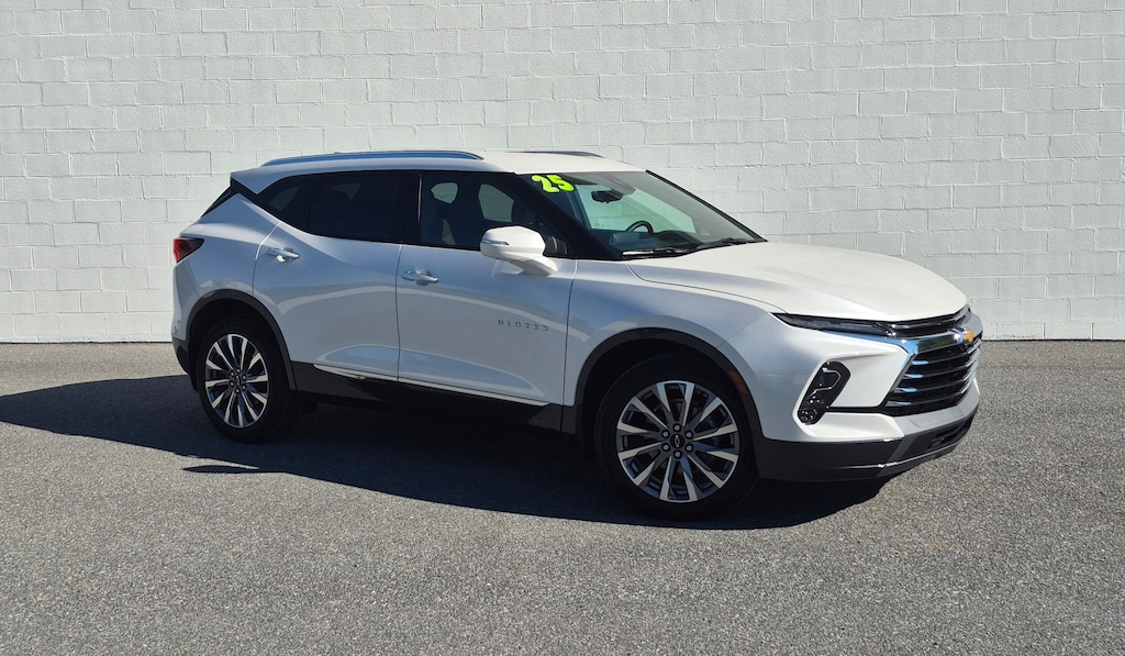 CARFAX One-Owner. Clean CARFAX. 2025 Chevrolet Blazer Premier Iridescent Pearl Tricoat AWD 9-Speed Automatic with Overdrive 3.6L V6 SIDI Excellent Condition, 170 Amp Alternator, 6-Way Power Front Passenger Seat Adjuster, 8-Way Power Driver Seat Adjuster, ABS brakes, Adaptive Cruise Control, Apple CarPlay/Android Auto, Auto High-beam Headlights, Auto-dimming door mirrors, Auto-dimming Rear-View mirror, Automatic temperature control, Bose Premium 8-Speaker Audio System Feature, Child-Seat-Sensing Airbag, Compass, Driver Confidence II Package, Dual front impact airbags, Dual front side impact airbags, Electronic Stability Control, Emergency communication system: OnStar and Chevrolet connected services capable, Enhanced Automatic Emergency Braking, Enhanced Convenience Package, Front Bucket Seats, Front dual zone A/C, Fully automatic headlights, Garage door transmitter, HD Surround Vision, Heated door mirrors, Heated front seats, Heated Rear Outboard Seating Positions, Heated steering wheel, Knee airbag, Leather Shift Knob, Leather steering wheel, Low tire pressure warning, Memory Settings For Driver Seat & Exterior Mirrors, Navigation System, Occupant sensing airbag, Outside temperature display, Overhead airbag, Overhead console, Perforated Leather-Appointed Seat Trim, Power door mirrors, Power Driver Lumbar Control, Power Liftgate, Power Tilt & Telescoping Steering Column, Power windows, Preferred Equipment Group 0HD, Premium audio system: Chevrolet Infotainment 3 Premium, Radio: Chevrolet Infotainment 3 Premium System, Rear Camera Mirror, Rear Camera Mirror Washer, Rear window defroster, Rear window wiper, Remote keyless entry, Ride & Handling Suspension, Safety Alert Seat, Security system, SiriusXM w/360L, Speed-sensing steering, Split folding rear seat, Steering wheel mounted audio controls, Tachometer, Telescoping steering wheel, Tilt steering wheel, Traction control, Trip computer, Turn signal indicator mirrors, Variably intermittent wipers, Ventilated Driver & Front Passenger Seats, Voltmeter, Wheels: 20" Medium Android Machined-Face Aluminum. 22/27 City/Highway MPG CALL US NOW FOR DETAILS 888-532-2121 HHCHEV.COM.