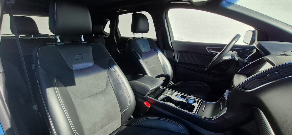 CARFAX One-Owner. Clean CARFAX. 2020 Ford Edge ST Blue AWD 8-Speed Automatic 2.7L V6 EcoBoost Local Trade, 110V/150W AC Power Outlet, ABS brakes, Adaptive Cruise Control w/Stop & Go, Auto tilt-away steering wheel, Auto-dimming Rear-View mirror, Automatic temperature control, Compass, Convenience Package, Dual front impact airbags, Dual front side impact airbags, Electronic Stability Control, Emergency communication system: SYNC 3 911 Assist, Equipment Group 400A, Evasive Steering Assist, Foot-Activated Hands-Free Liftgate, Ford Co-Pilot360 Assist+, FordPass Connect, Front Bucket Seats, Front dual zone A/C, Front fog lights, Fully automatic headlights, Garage door transmitter, Heated door mirrors, Heated front seats, Knee airbag, Lane Centering, Leather-Trimmed Heated ST Bolstered Bucket Seats, Low tire pressure warning, Memory seat, Occupant sensing airbag, Outside temperature display, Overhead airbag, Overhead console, Panoramic Vista Roof, Perimeter Alarm, Power door mirrors, Power driver seat, Power Liftgate, Power passenger seat, Power windows, Radio: B&O Sound System by Bang & Olufsen, Rain sensing wipers, Rear window defroster, Rear window wiper, Remote keyless entry, Remote Start System, Security system, SiriusXM Radio, Split folding rear seat, Steering wheel mounted audio controls, SYNC 3 Communications & Entertainment System, Tachometer, Telescoping steering wheel, Tilt steering wheel, Traction control, Trip computer, Turn signal indicator mirrors, Universal Garage Door Opener (UGDO), Variably intermittent wipers, Voice-Activated Touchscreen Navigation System, Wheels: 20" Bright-Machined Aluminum, Wireless Charging Pad. 19/26 City/Highway MPG CALL US NOW FOR DETAILS 888-532-2121 HHCHEV.COM.