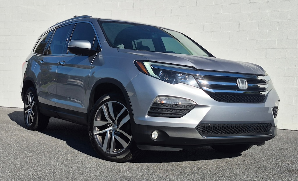 2018 Honda Pilot Elite Silver AWD 9-Speed Automatic 3.5L V6 24V SOHC i-VTEC Local Trade, AS IS Budget Buy, 20" Alloy Wheels, 3rd row seats: split-bench, ABS brakes, Apple CarPlay/Android Auto, Auto-dimming Rear-View mirror, Automatic temperature control, Blind Spot Information (BSI) System warning, Compass, Delay-off headlights, Dual front impact airbags, Dual front side impact airbags, Electronic Stability Control, Exterior Parking Camera Rear, Front Bucket Seats, Front dual zone A/C, Front fog lights, Fully automatic headlights, Garage door transmitter: HomeLink, Heated & Ventilated Front Bucket Seats, Heated door mirrors, Heated rear seats, Heated steering wheel, Honda Satellite-Linked Navigation System, Leather Shift Knob, Low tire pressure warning, Memory seat, Navigation System, Occupant sensing airbag, Outside temperature display, Overhead airbag, Overhead console, Perforated Leather-Trimmed Seats, Power door mirrors, Power driver seat, Power Liftgate, Power moonroof, Power passenger seat, Power windows, Radio: AM/FM/HD Premium Audio System, Rain sensing wipers, Rear air conditioning, Rear window defroster, Rear window wiper, Remote keyless entry, Security system, SiriusXM Radio, Speed control, Split folding rear seat, Steering wheel mounted audio controls, Tachometer, Telescoping steering wheel, Tilt steering wheel, Trip computer, Turn signal indicator mirrors, Variably intermittent wipers. 19/26 City/Highway MPG CALL US NOW FOR DETAILS 888-532-2121 HHCHEV.COM.