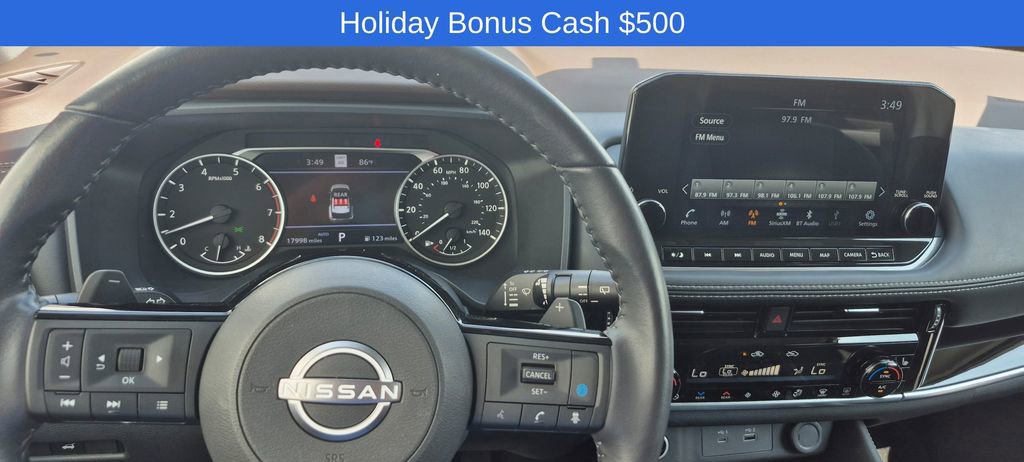 CARFAX One-Owner. Clean CARFAX. 2023 Nissan Rogue SL Pearl White Tricoat AWD CVT with Xtronic 1.5L I3 Turbocharged DOHC 12V LEV3-ULEV50 201hp Local Trade, 19" Aluminum Alloy Wheels, ABS brakes, Auto-dimming Rear-View mirror, Automatic temperature control, Black Splash Guards (Set of 4), Bose Premium Audio System, Chrome Rear Bumper Protector, Delay-off headlights, Driver vanity mirror, Dual front impact airbags, Dual front side impact airbags, Electronic Stability Control, Front dual zone A/C, Fully automatic headlights, Heated door mirrors, Heated Front Bucket Seats, Heated steering wheel, Knee airbag, Leather steering wheel, Leather-Appointed Seat Trim, Low tire pressure warning, Memory seat, Motion Activated Power Liftgate, NissanConnect featuring Apple CarPlay and Android Auto, Occupant sensing airbag, Outside temperature display, Overhead airbag, Overhead console, Power door mirrors, Power driver seat, Power Liftgate, Power moonroof, Power passenger seat, Power windows, ProPILOT Assist w/Navi-link, Radio: AM/FM NissanConnect w/Navigation, Rear Parking Sensors, Rear side impact airbag, Rear window defroster, Rear window wiper, Remote keyless entry, Security system, SL Premium Package, Speed-Sensitive Wipers, Split folding rear seat, Steering wheel mounted audio controls, Tachometer, Telescoping steering wheel, Tilt steering wheel, Traction control, Traffic Sign Recognition, Tri-Zone HVAC, Trip computer, Turn signal indicator mirrors, Variably intermittent wipers. Odometer is 15967 miles below market average! 28/34 City/Highway MPG CALL US NOW FOR DETAILS 888-532-2121 HHCHEV.COM.