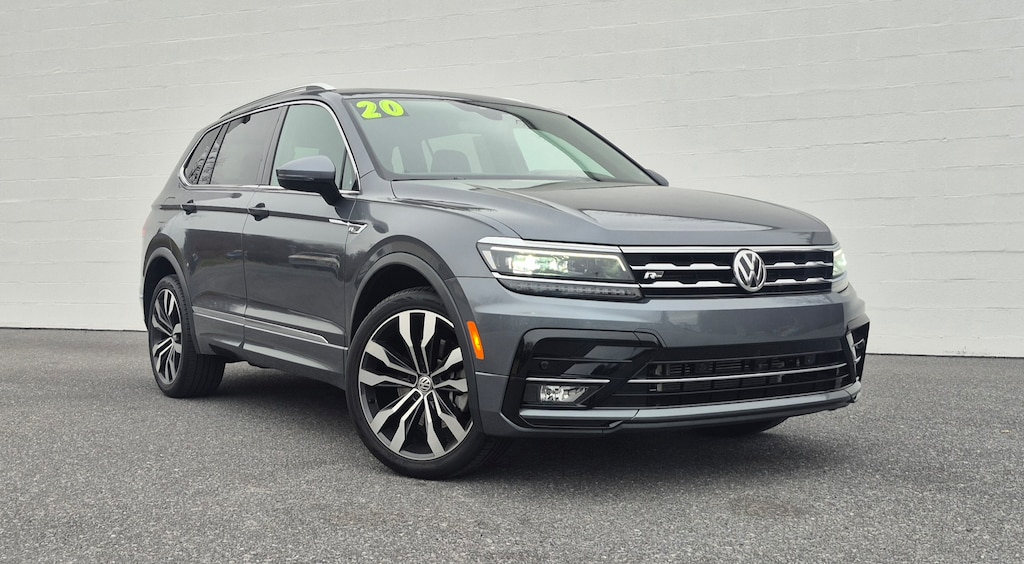 CARFAX One-Owner. Clean CARFAX. 2020 Volkswagen Tiguan 2.0T SEL Premium R-Line Gray 4Motion AWD 8-Speed Automatic with Tiptronic 2.0L TSI DOHC 8 Speakers, ABS brakes, Auto-dimming Rear-View mirror, Automatic temperature control, Compass, Dual front impact airbags, Dual front side impact airbags, Electronic Stability Control, Emergency communication system: VW Car-Net services (capabilities require enrollment or subscription), Forward collision: FCW w/Autonomous Emergency Braking mitigation, Front Bucket Seats, Front dual zone A/C, Front fog lights, Fully automatic headlights, Heated door mirrors, Heated Front Comfort Sport Seats, Heated steering wheel, Leather Shift Knob, Low tire pressure warning, Memory seat, Navigation System, Occupant sensing airbag, Outside temperature display, Overhead airbag, Overhead console, Power door mirrors, Power driver seat, Power Liftgate, Power moonroof, Power windows, Radio: Discover Media AM/FM/HD, Rain sensing wipers, Rear window defroster, Rear window wiper, Remote keyless entry, Security system, Speed control, Speed-sensing steering, Split folding rear seat, Steering wheel mounted audio controls, Tachometer, Telescoping steering wheel, Tilt steering wheel, Traction control, Trip computer, Turn signal indicator mirrors, Variably intermittent wipers, Vienna Leather Seating Surfaces, VW App-Connect (w/Apple CarPlay, Android Auto & MirrorLink), Wheels: 20" 2-Tone Machined Dark Graphite Alloy. 20/27 City/Highway MPG CALL US NOW FOR DETAILS 888-532-2121 HHCHEV.COM.